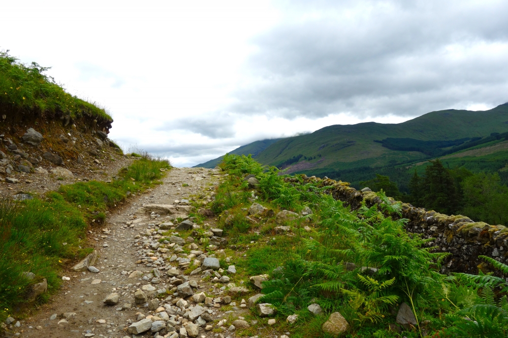 This – for me – was the hardest part of the whole way. The West Highland Way led through a forest, always close to the east side of Scotlands largest lake, Loch Lomond. At first, I walked on forestry roads until the WHW comes to a cross roads. One way stayed on the forestry roads and the other leads closer to the lake’s side. This one became rockier and – it was raining – muddier. I could not walk as fast and easy as on the days before and I had to use my walking poles (thanks, Dad, that I could take your’s) to prevent me from slipping or tumbling.