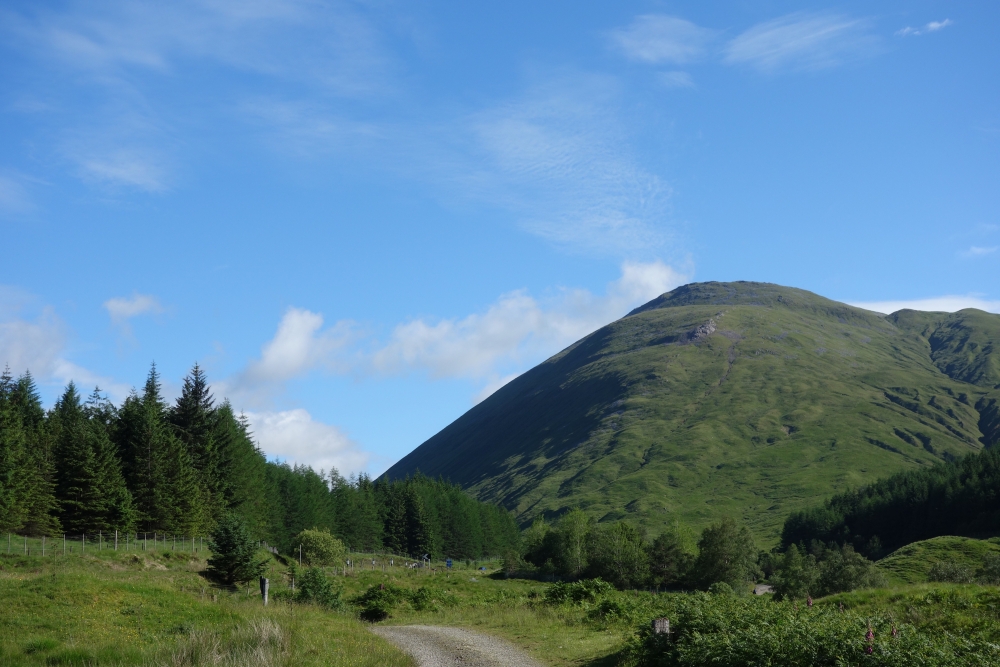 The first part of the WHW today led to Bridge of Orchids, a small settlement which seemed to be build around a big hotel and a train station. On this morning, it was really sunny, so I could enjoy my walk wouldn’t there be the two blisters I cut open the day before. So when I finally reached Bridge of Orchids, I made a stop on a small rock on a meadow and tended to my feet. There I met some other hikers, who had just arrived on the train station and started walking the way back to Tyndrum. Knowing them from previous days on the way, I asked them, why they did this, instead walking the „right“ direction. Turned out, all beds in Kingshouse and Kinlochleven were booked the time they looked for some. So they had decided to stay in Tyndrum for a few nights and travel from there by train to their next stages and back in the evening.