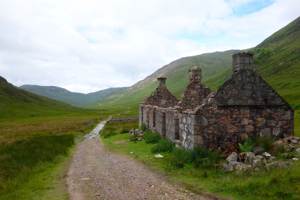 Leaving Kinlochleven, I had to follow a small trail up a hill where I apparently took a wrong turn and lost my way. After following a paved road further up the hill I found an abandoned hotel, which, hadn’t there been no CCTV signs (video surveillance), I would have „visited“ as a Lost Place. Being convinced to be on the right track, I headed on, only to find the road blocked by an No entry-sign and a small settlement called „Stalker’s Lodge“ – may have been also abandoned. After consulting my map and compass, I decided to go back.